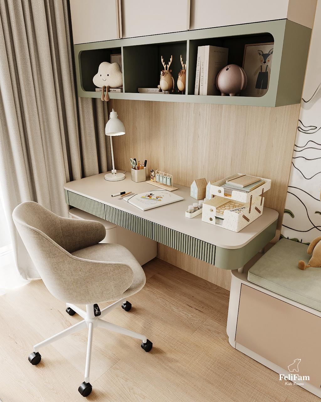 Цей стильний інтер’єр створений для комфортного навчання, відпочинку та гри. Зручне ліжко з м’яким підсвічуванням дарує атмосферу затишку, а функціональна зона для навчання налаштовує на концентрацію та творчість.
